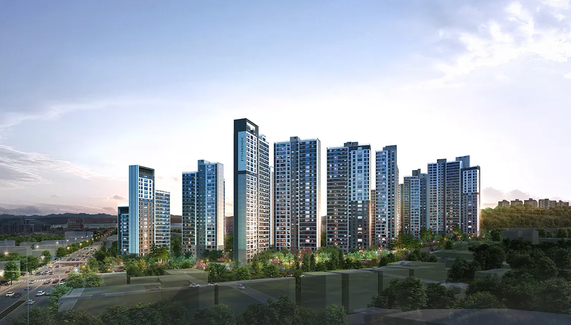 대형 쇼핑시설, 병원, 문화시설 등이 가까우며 생활 편의성이 높습니다. 단지 내부에는 녹지 공간이 충분히 배치되어 주거 쾌적성을 확보했습니다. 고층 세대에서는 시야가 트인 조망을 누릴 가능성도 있습니다.