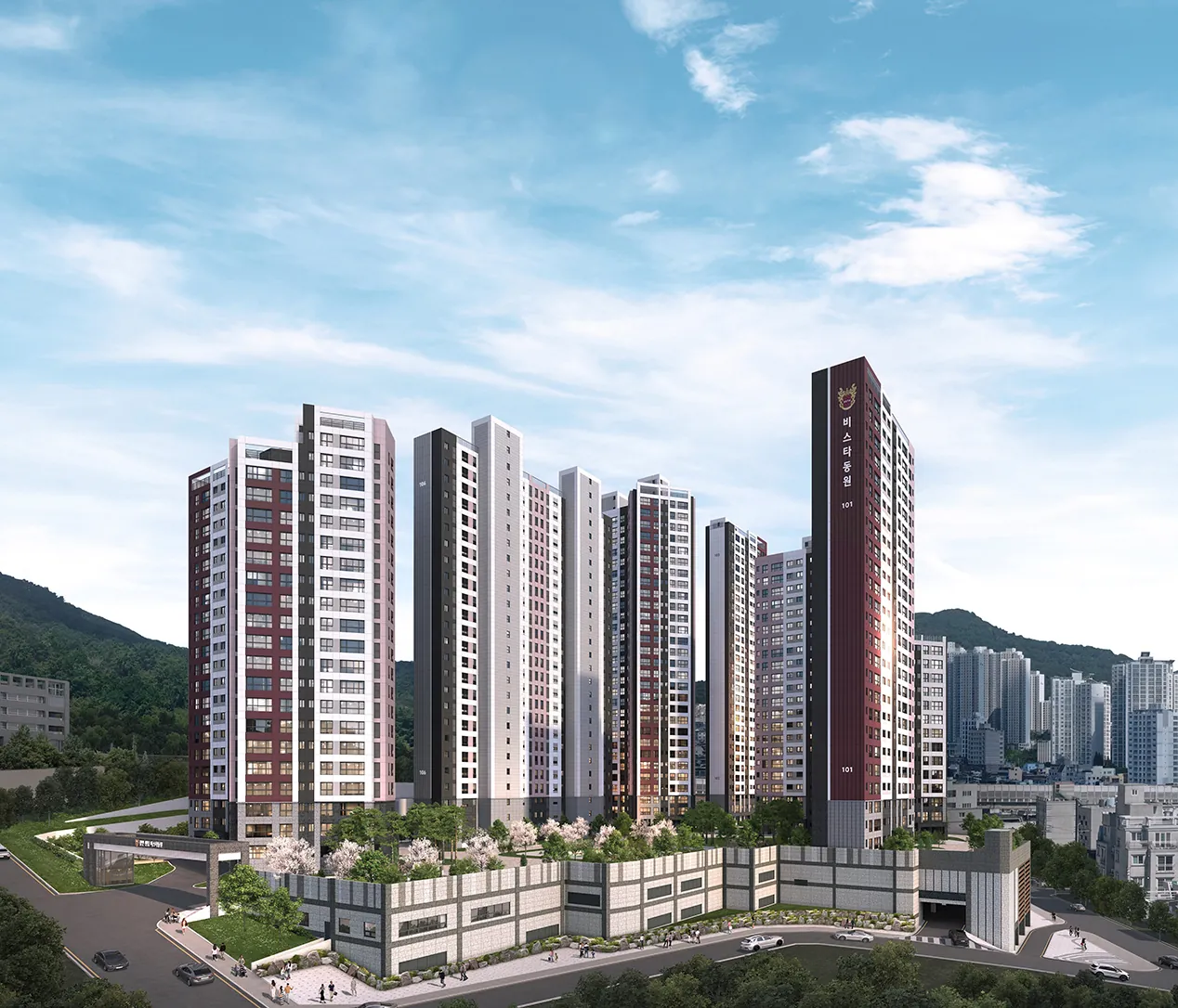 광안 센텀 비스타동원은 금련산 및 황령산 인접이라는 청정 자연 환경과 동시에 광안리 바다 조망을 확보할 수 있는 조건을 강조합니다. 단지 전체 조경 설계와 녹지 축 배치, 조망 라인의 확보 등이 상품성의 핵심 구성 요소로 소개되어 있습니다.